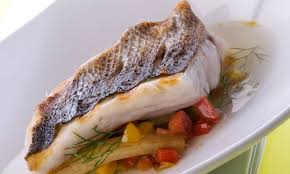 de lubina y, si lo desea, añada sobre las cabezas de hinojo reservadas, el